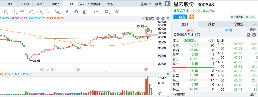 不过,也有一些零星品种选择正面硬刚,走出了力度虽然不如军工,但也相对算相对独立的行情。比如星云股份(300648.SZ),8月2日(本周二),它仿佛遇到了什么利好,跳空高开,封死20%涨停板。