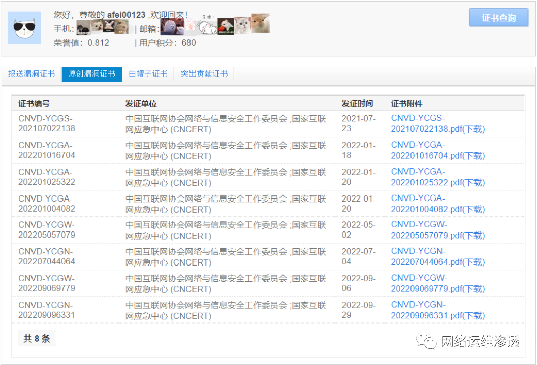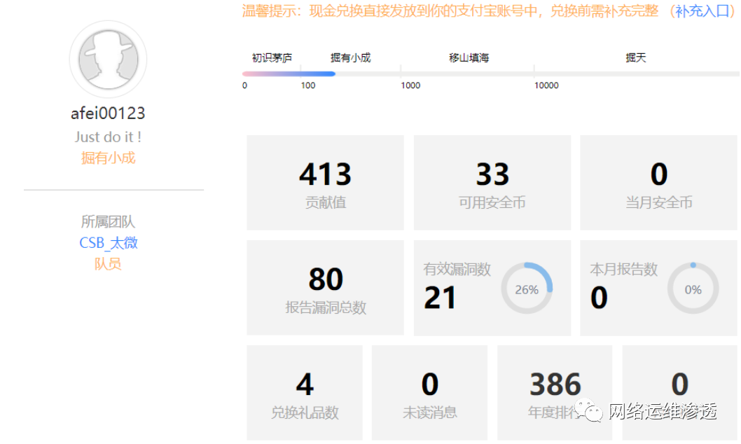 曾经一段时间,我也迷上了挖SRC,毕竟能赚点外快,补贴补贴家用,对吧😜。挖过58SRC、百度SRC、漏洞盒子、补天、阿里SRC、以及现在的天融信SRC、360BugCloud。只能说,挖洞随缘吧,都是一些垃圾洞。还得是代码审计,挖0 day才好玩。一开始觉得CNVD证书好难,现在觉得好简单。对了,还去过hackone,真心菜,挖不动,荣誉值都成负数了。唉,还是先搞国内的吧。