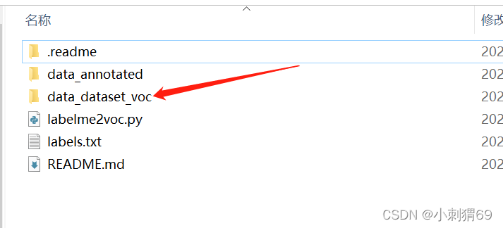 data_annotated是标注图像的名字,data_dataset_voc是新创建的VOC格式的文件名字。