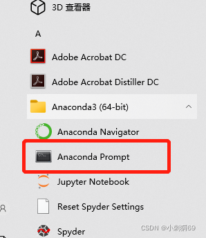 点击Anaconda Prompt进行安装。所有的命令都在此进行。