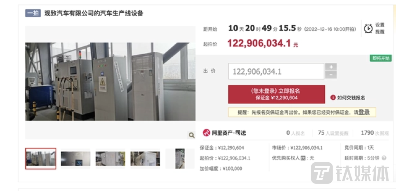 日前,安徽芜湖经济技术开发区人民法院发布了一则拍卖公告,标的为观致汽车有限公司的汽车生产线设备,起拍价约为 1.23 亿元。
