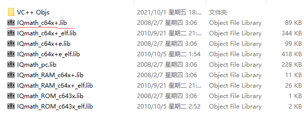 ④lib文件夹里面包含了IQmath库的所有源文件(lib格式),其中我们要使用的是第一个lib文件