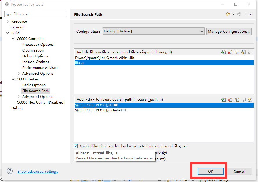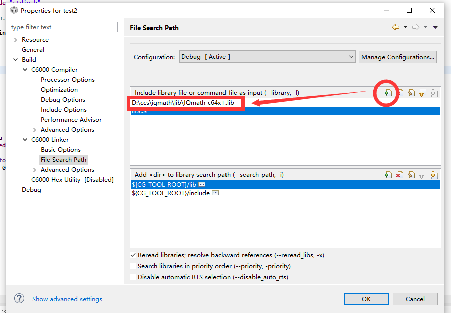 (4)将刚才提到的IQmath_c64x+lib添加到lib环境当中