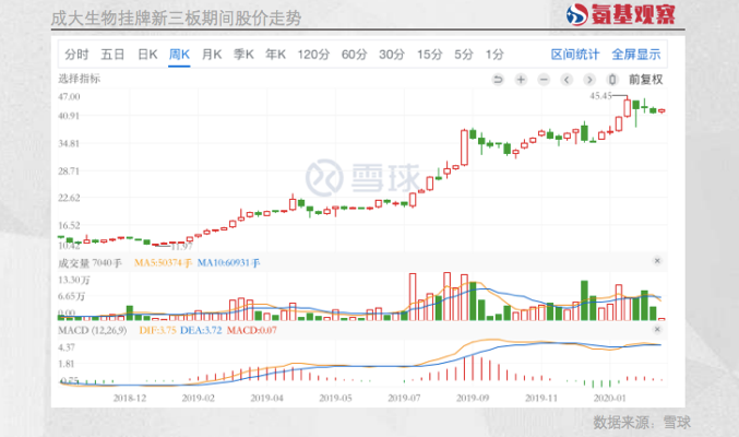 而这部分投资者或许不会太少。在精选层和分拆上市的双重预期下,如下图所示,成大生物在新三板走出了一波气势如虹的大涨。