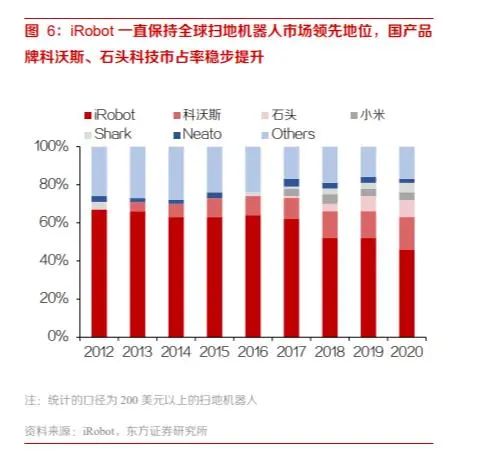 市场份额上:引领行业后,iRobot一跃成为全球扫地机器人龙头,截止目前,仍稳居扫地机器人全球市占率第一的宝座。