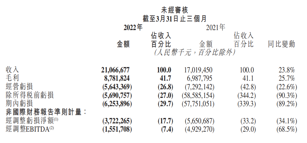 5月24日,快手发布2022年第一季度业绩:当季营收210.7亿元,同比增长23.8%;经调整亏损37.2亿元,同比收窄34.1%。