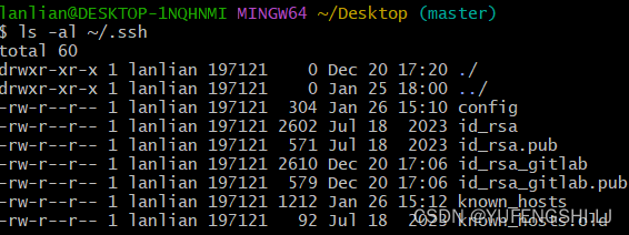 本机情况,这是入职时接手的工作电脑,工作使用的仓库是GitLub,自己学习使用的仓库是GitHub。