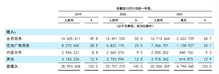 经过十余年发展,会员收入已成为长视频平台营收结构的“顶梁柱”。根据爱奇艺披露的财报,2018年,其会员收入首次超过了广告收入,共106亿元,占总收入的42.5%,之后几年都占据总收入的50%以上。昨日披露的财报显示,2022年,爱奇艺会员服务的收入为177亿,已经占到总收入的61%。