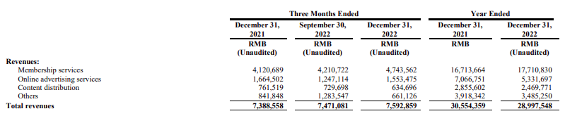 日前,爱奇艺公布2022年财报,宣布首次实现全年运营盈利。其中,占总收入一半以上的会员收入受到广泛关注,财报数据显示,爱奇艺Q4会员数达到近1.2亿,会员收入创单季最高,平均单会员收入14.7元。