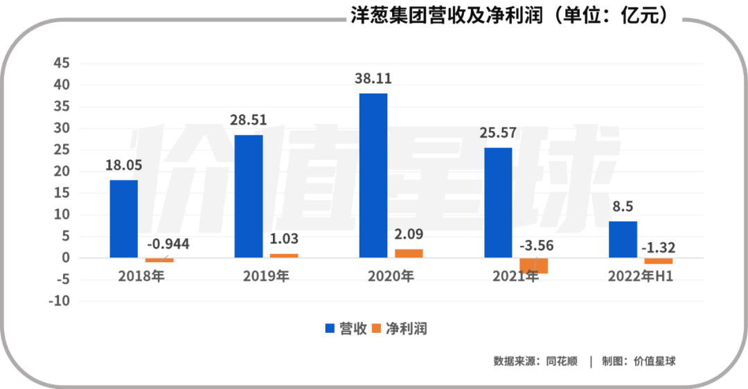 进入2022年后,由于疫情的影响,洋葱集团经营情况更进一步恶化。2022年半年报甚至拖到近日才公开。