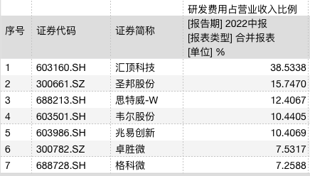 格科微研发费用占营收比重与行业对比情况,截图自Wind