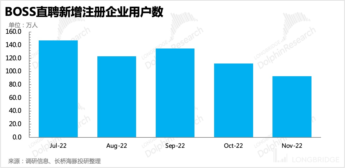 相比于同行惨遭宏观之拳,BOSS 直聘还面临着监管的重击、互联网裁员潮的影响,但硬币的另一面,也就意味着当下 BOSS 直聘困境反转的拐点意味更强。7 月网络安全审查落地,冰冻了一年的新用户注册才终于恢复。