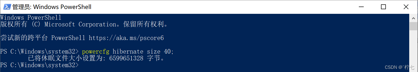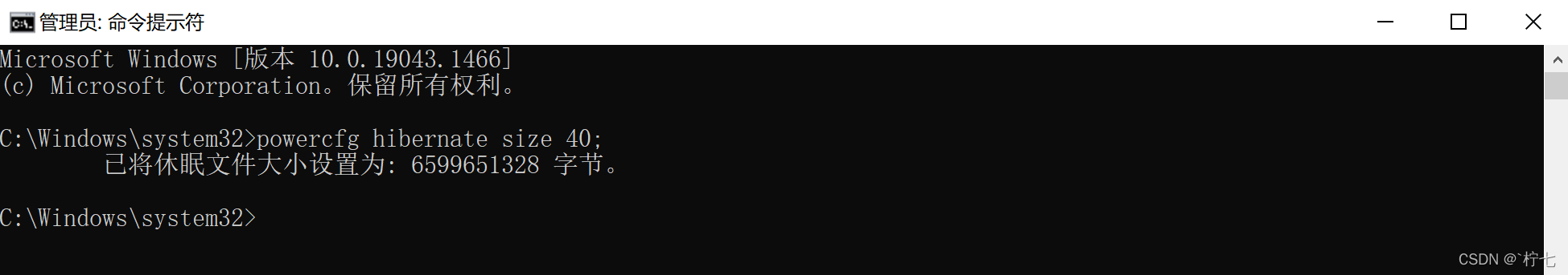 打开之后,输入【powercfg hibernate size 40】就可以清除系统的休眠文件了。