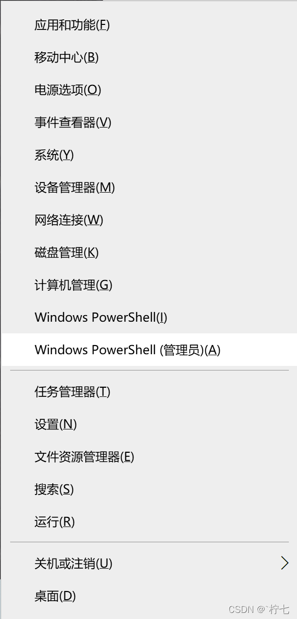 【win+x】打开会出现如下界面,选择【Windows PowerShell(管理员)】,有的电脑上是【命令提示符(管理员)】,根据自己电脑去选就好了