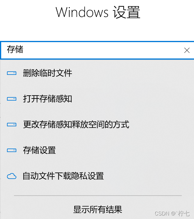 接下来,这个时候有一个快捷的方法,可以直接在搜索框中输入“存储”,选择“打开存储感知”。