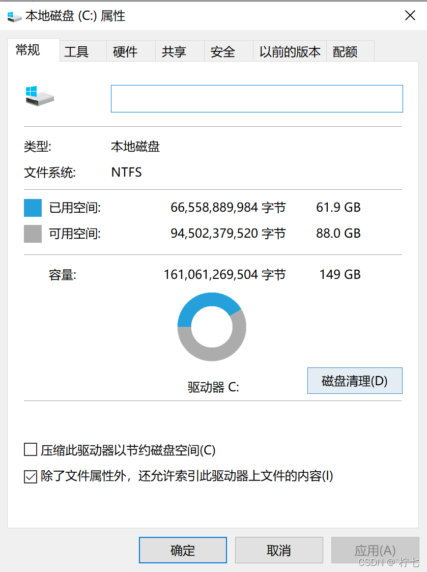 点击此电脑,选择C盘,右击打开【属性】,进入以下界面,点击磁盘清理;