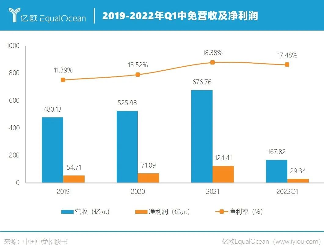 2022年第一季度,中免营收为167.82亿元,同比下降0.7%;净利润为29.34亿元,同比下降14.4%。