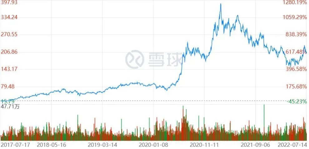 图:中国中免近5年股价走势图
