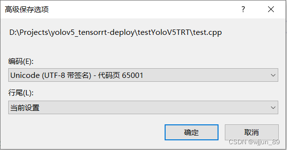 - 然后选中高级保存选项,弹出的对话框可以选择编码utf-8