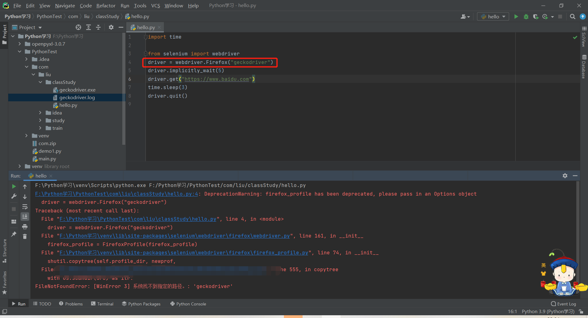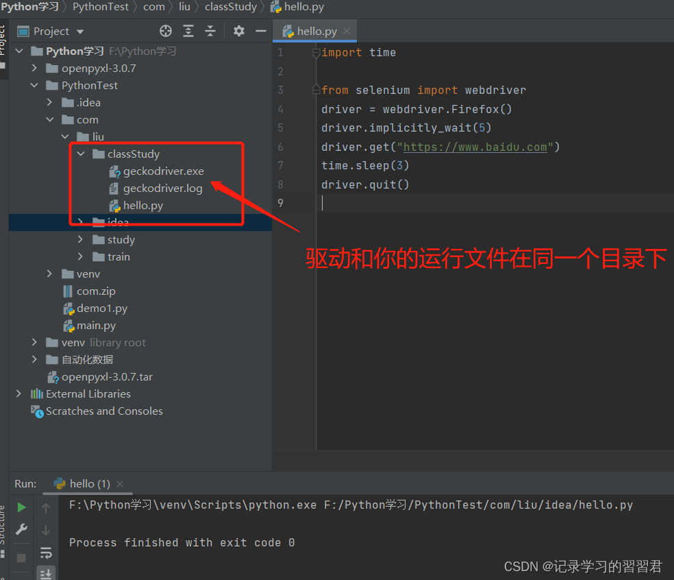 将geckodriver.exe执行文件放到和python文件同级目录中。