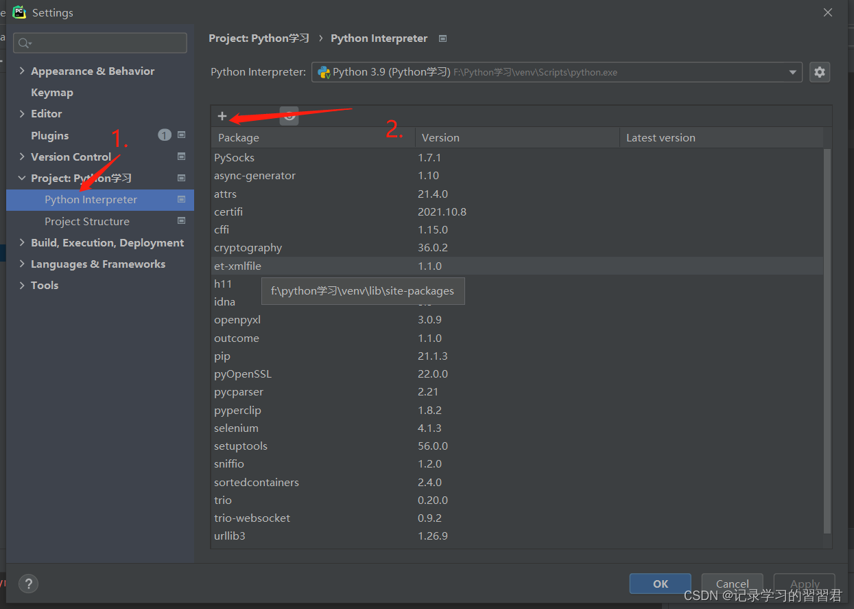 1.4在pycharm中安装 selenium 包