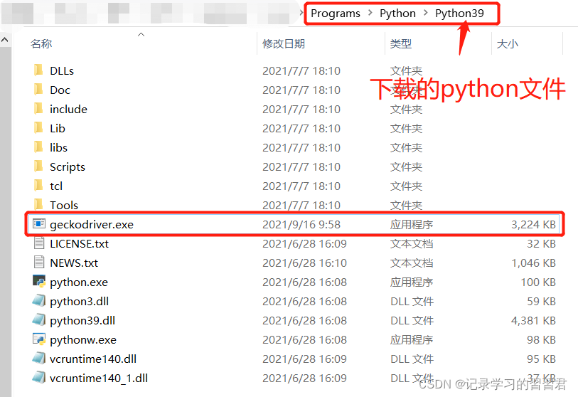 直接将geckodriver.exe执行文件方放到Python目录下。