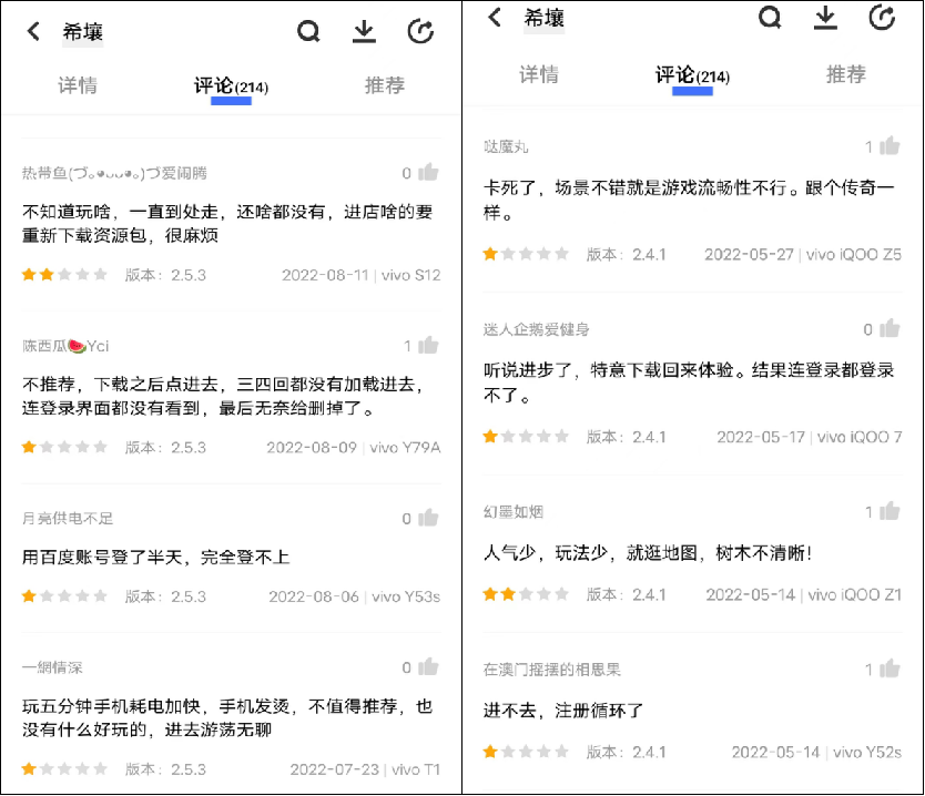 (希壤最新用户评论 图源:VIVO应用商店评价)