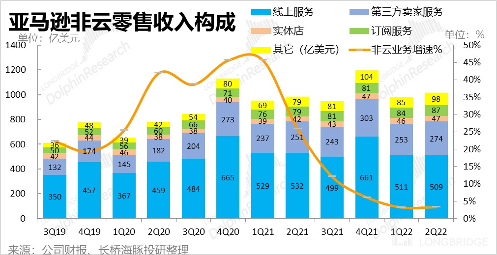②本季第三方卖家服务增速逆势上扬是最为超预期的点,本季收入 274 亿,超出市场预期 261 亿 5%。同时营收增速也由上季的 6.9% 提升到了 9.1%,实属惊喜。海豚君认为,为对冲成本压力,公司多次对 FBA 物流服务的提价应当促进了卖家服务的逆势上扬。