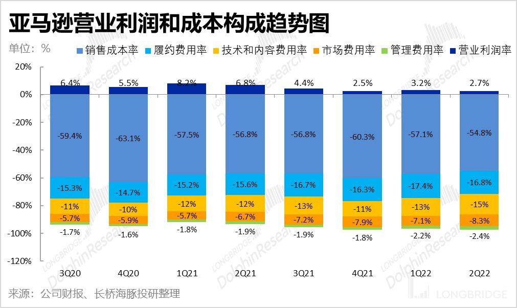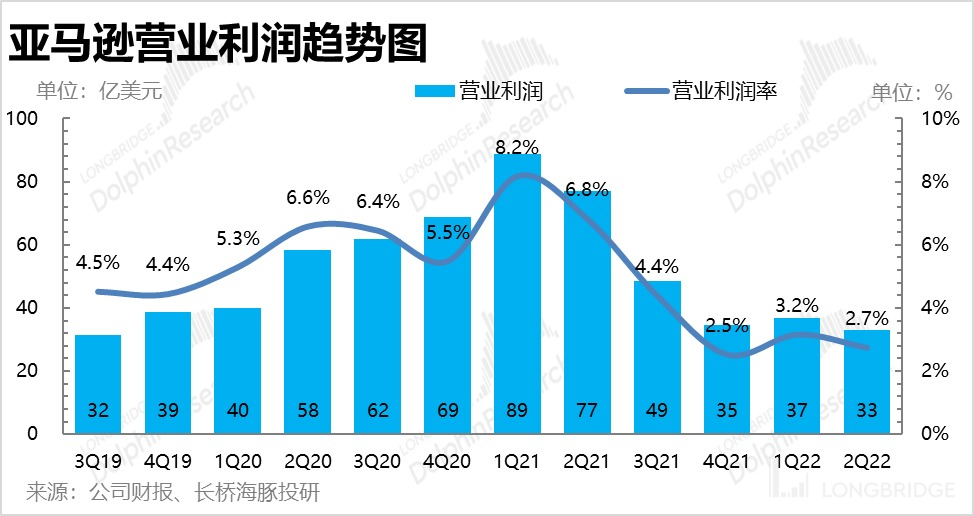 在通胀飞涨的背景下,亚马逊也多次表示将通过提价、放缓投入节奏来部分转移通胀导致的成本、费用上升压力。从本季的结果来看,上述措施的确起到了一定效果。