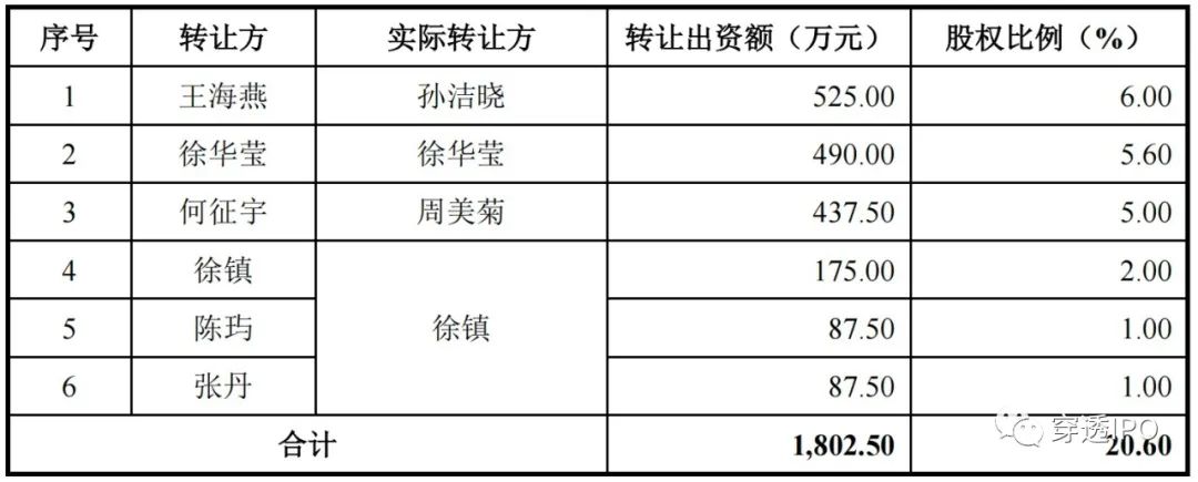 乐居财经《穿透IPO》注意到,2018年4月,众捷有限主要股东向孙文伟转让部分股权,这部分股权转让出资额合计1802.50万元,但未实际支付转让对价。同时,丁凤华代持的13.60%股份还原给孙文伟。