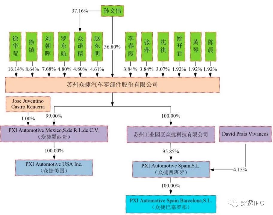 截至招股说明书签署日,众捷汽车由孙文伟直接持股36.80%,通过员工持股平台众诺精间接控制4.80%股份,其控制的有表决权的股份占众捷汽车总股本的41.60%。