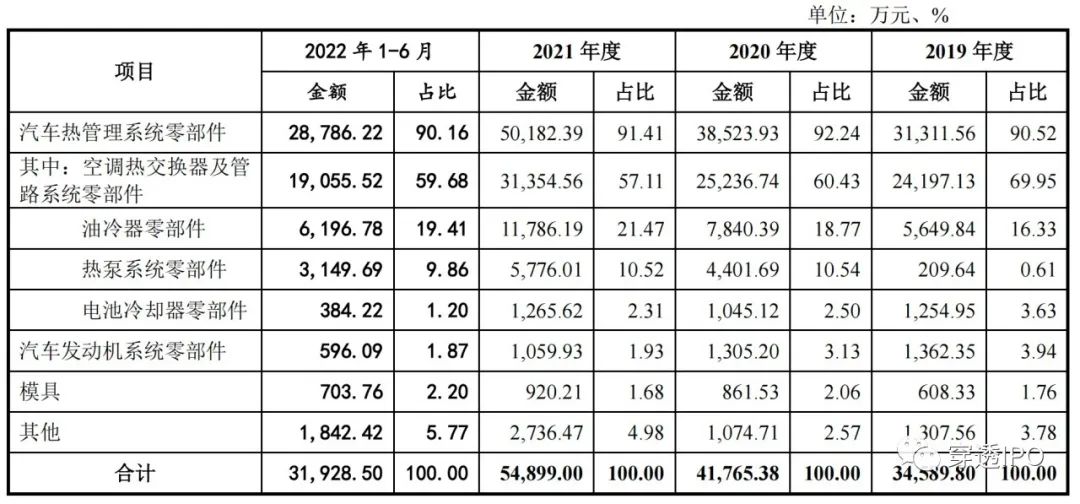 众捷汽车主营业务收入带来的业绩占比常年在90%以上,其中自汽车热管理系统零部件业务,又占主营业务收入的平均比例为91.08%。