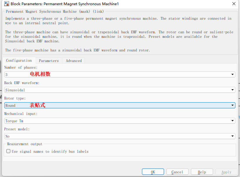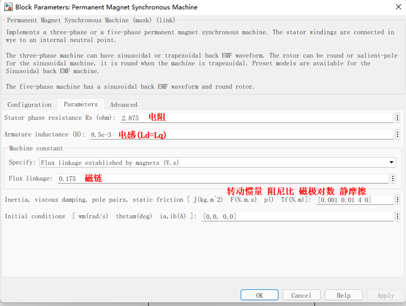永磁同步电机模块(Permanent MagnetSynchronous Machine):