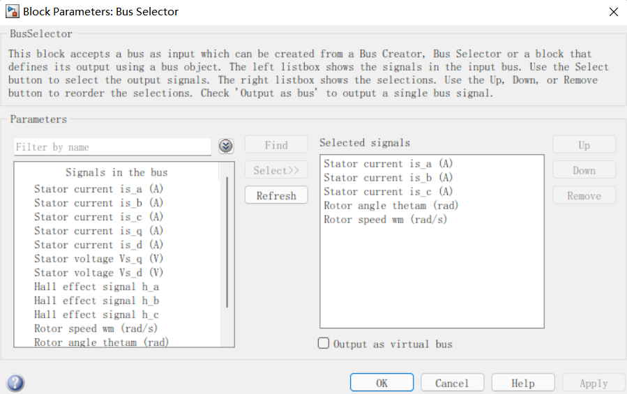 bus selector模块(分离出电机中电流、转子位置、转速等信号):