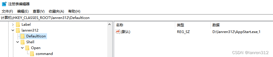 [HKEY_CLASSES_ROOT\lanren312\DefaultIcon] // 软件标识