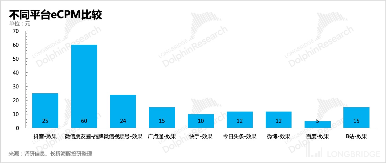 一般而言,eCPM 体现的是平台的竞争力和商业价值。在商家眼中,不同平台之间会存在不同的流量价值,背后的逻辑是用户之间的购买转化有着显著的差异。