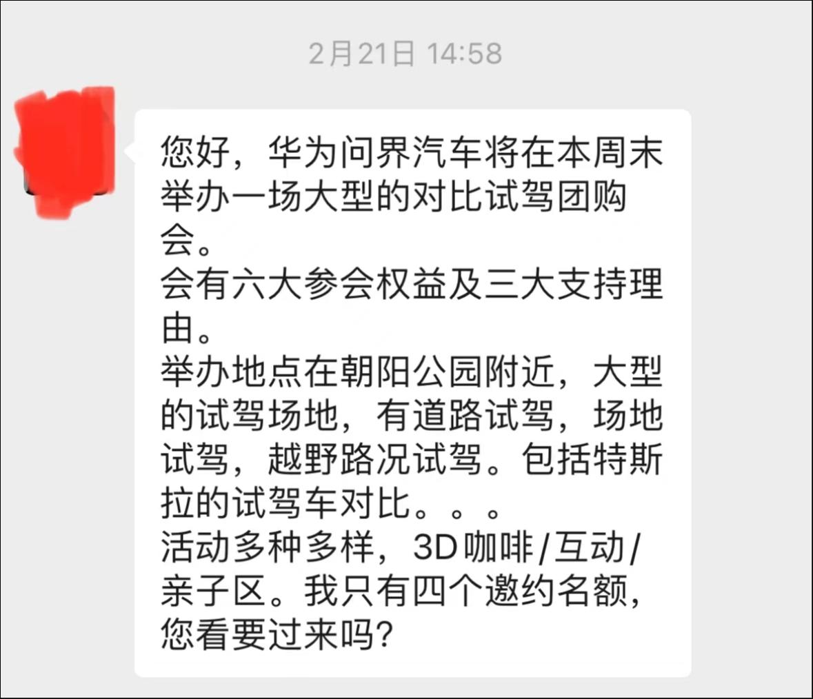 当日,众多华为销售顾问都在朋友圈转发这一消息,而在更早之前的2月份,已经有销售在向客户推荐AITO汽车时,就用上了“华为问界”字样。他们希望通过这种方式,能快速招揽新客户。因为对于很多销售顾问来说,自2023年开年以来,他们已经很久没开单了。