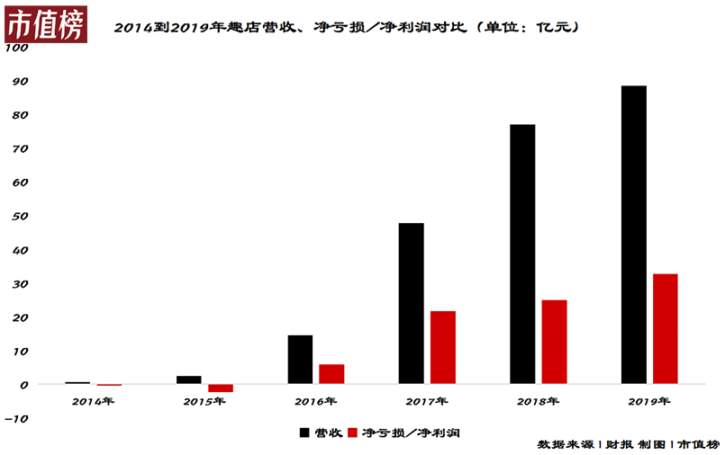 从2015年到2019年,短短四年的时间,趣店的收入就从2.35亿元飞升至88.4亿元,从以亏损换市场到最高年赚32.6亿元。