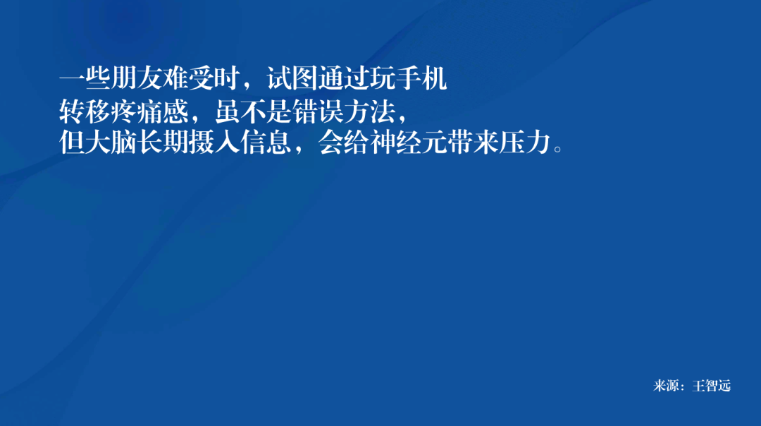 一些朋友难受时,试图通过玩手机转移疼痛感,虽理论上不是错误的方法,但大脑长期摄入信息,会给神经元带来一定压力。