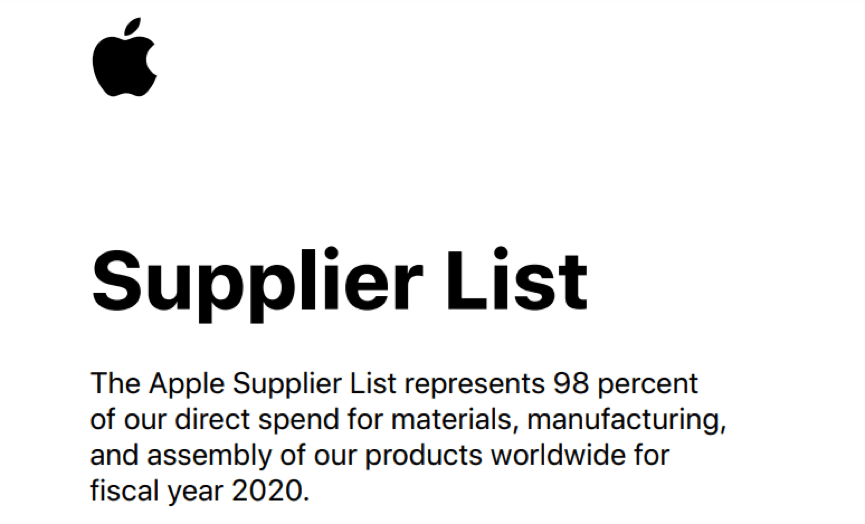 2021年6月,苹果公司官网公布2020年版供应商名单,超过200家的供应商来自全球各地,截至目前尚未有最新的供应商名单更新。