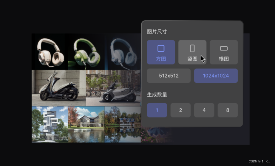 6大通用尺寸:Pixso AI支持正方形、横屏、竖屏等6种通用尺寸,最高8张照片同时生成,支持描述生图、以图生图等,覆盖设计师绝大部分传作场景。