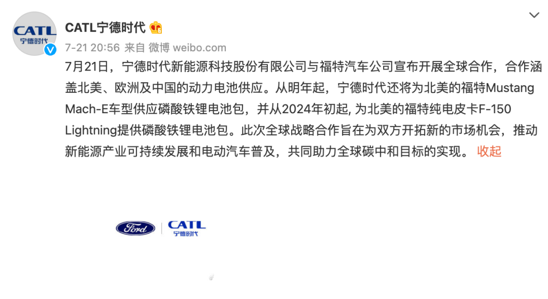 另一方面,在续航里程竞赛进入到白热化阶段时,车企希望与供应商一起来合作研发、合资建厂,让其产品力形成独特的差异化。但作为动力电池领域的巨头,宁德时代也分身乏术,不可能充分满足每一家合作车企所提出来的需求。