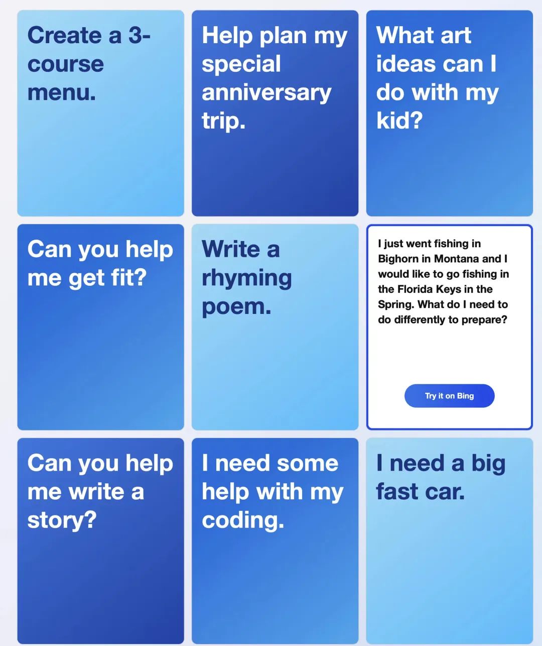 值得注意的是,新版Bing并不会完全颠覆以搜索为主要功能的旧版Bing,二者会共存**——新版中的AI更多是一个为搜索“赋能”的角色。**
