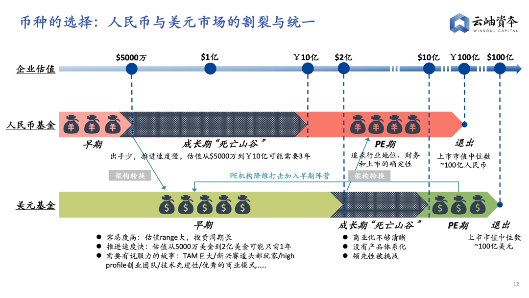 而既没有达到PE的评估标准,估值也超过了早期范围,处在这个“成长期”,融人民币的效率一般是不高的,如果基本面没有大的突破,在人民币市场上从3亿估值成长到10亿可能需要3年以上的时间,资金如果跟不上,甚至很难跑得出来。