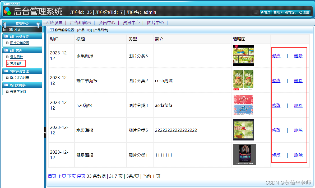 我的图片列表:显示我所有上传的图片信息,支持修改和删除。