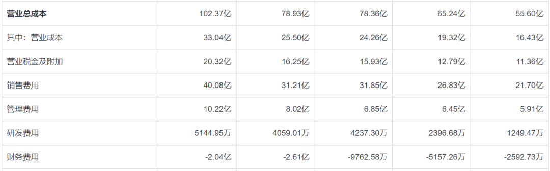 根据近几年年报显示,2018年-2021年古井贡酒的销售费用分别为26.82亿元、31.85亿元、31.21亿元、40.08亿元,销售费用率分别为30.88%、30.57%、30.32%、30.20%。