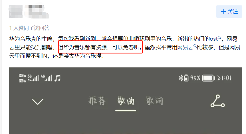 在尽可能丰富内容生态的同时,音乐APP一方面要不断强化个性化推荐、歌单、乐评等功能,始终围绕“音乐”这个核心进行深耕,让发现音乐以往更快更精准,对其他衍生功能则保持最大程度的克制,华为音乐今年1月推出的跨应用识别音乐功能就颇受用户认可。另一方面,要不断提升音乐品质,为用户打造最极致的听歌体验。