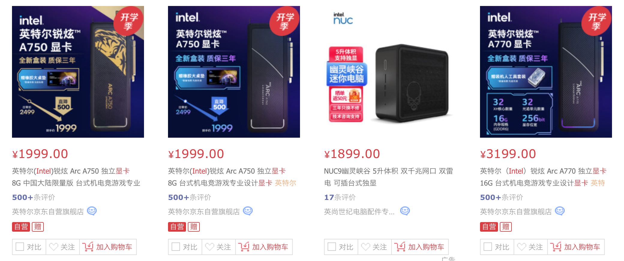 反观Intel,他们深知自己是一家“半路出家”的新手,想要一上来就去对标英伟达的高端显卡肯定是不实际的,因此他们一开始的策略和着重点就放在入门和中端显卡上,先后推出了Arc A380、A750、A770三款显卡。