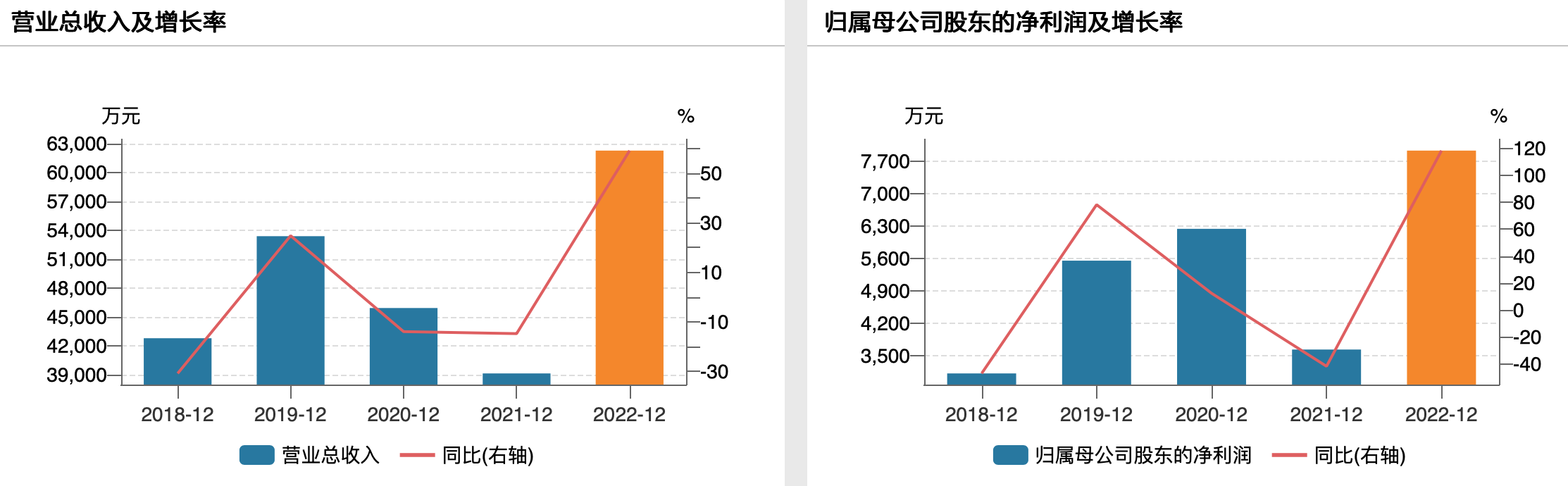 根据2022年报,公司去年结束了3年的收入滑坡,实现营业总收入6.22亿元,较上年增长59.10%;实现归属于母公司所有者的净利润7925.89万元,较上年增长 118.20%。不过与之同时上升的还有应收账款。