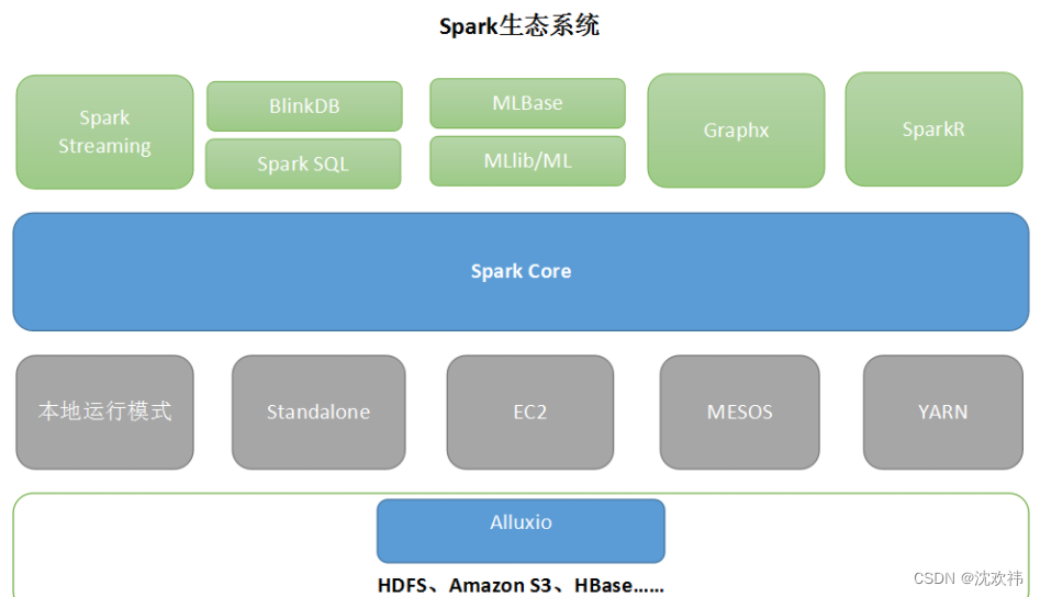实际上,Spark 已经很好地融入了 Hadoop 生态圈,并成为其中的重要一员,它可以借助于YARN 实现资源调度管理,借助于 HDFS 实现分布式存储。